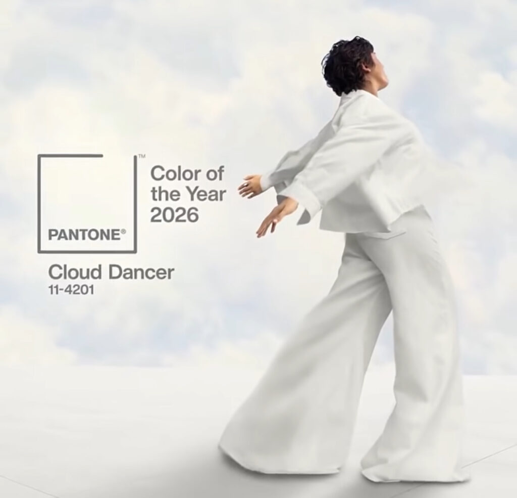 Assim como todo dezembro, a Pantone divulgou sua cor para o próximo ano — e o tom eleito para 2026 é um branco empoeirado, chamado Cloud Dancer.
